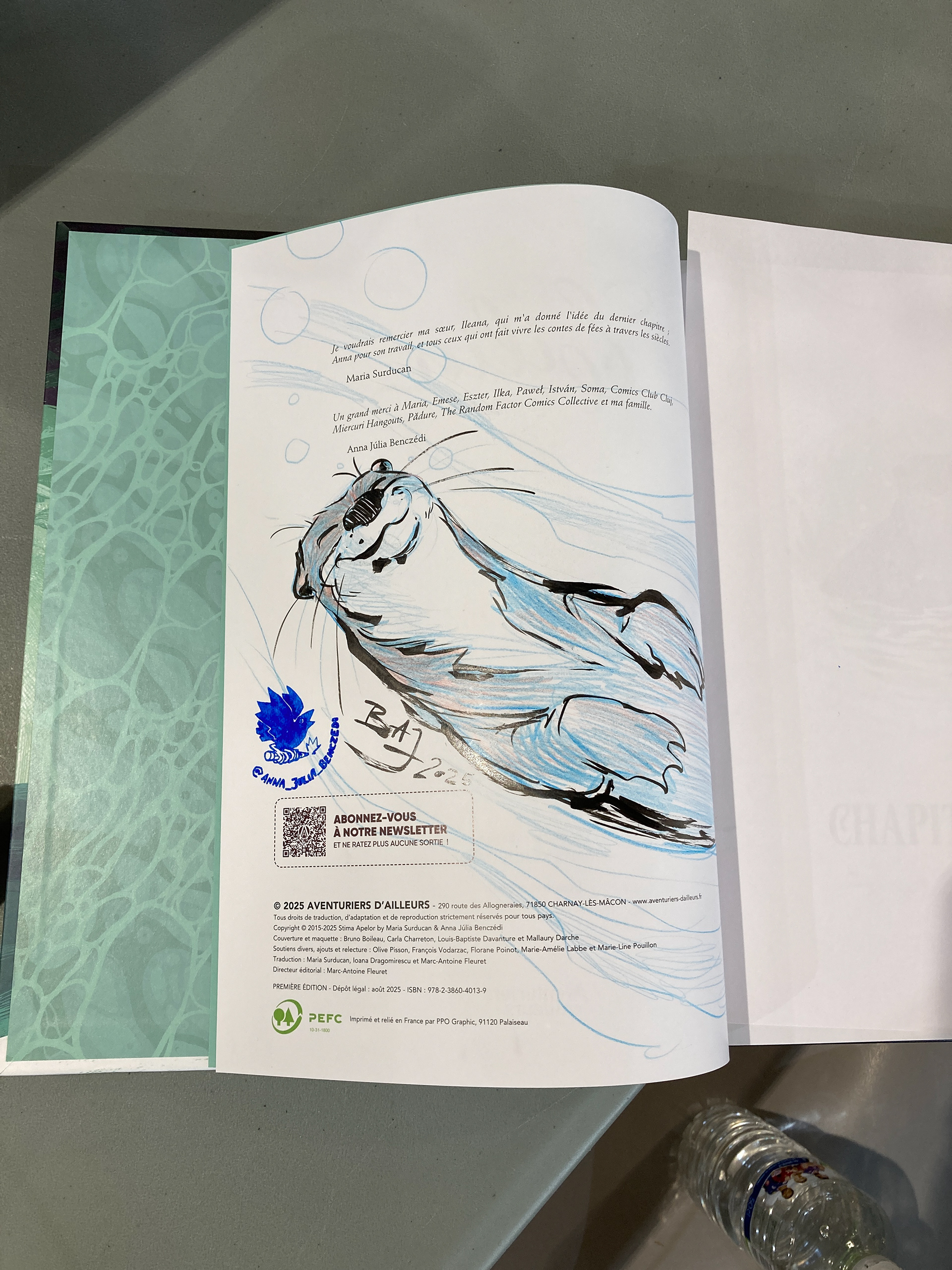 Eilin du fond de l'eau is the French edition of the award winning Știma apelor. It is an omnibus, collecting the first two volumes + a lenghty new one. It is written by Maria Surducan and drawn by me. Our publisher is Aventuriers d'ailleurs, the book appeard in France on 20 August 2025.