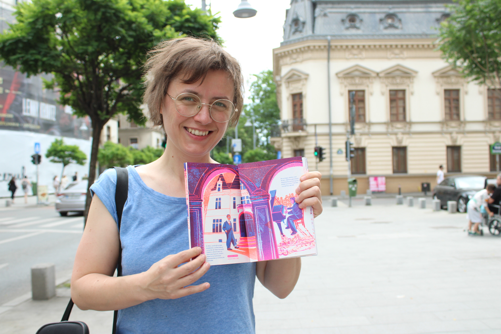 Illustrated pages from the 100 year history of the French Institute in Romania (1924-2024)
